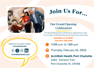 You’re Invited! ArchWell Health Port Charlotte. We are excited to warmly invite you to celebrate the Grand Opening of ArchWell Health Port Charlotte – a new primary care center designed especially for older adults! Join us for a fun and festive afternoon with a coastal flair! ArchWell Health provides best-in-class